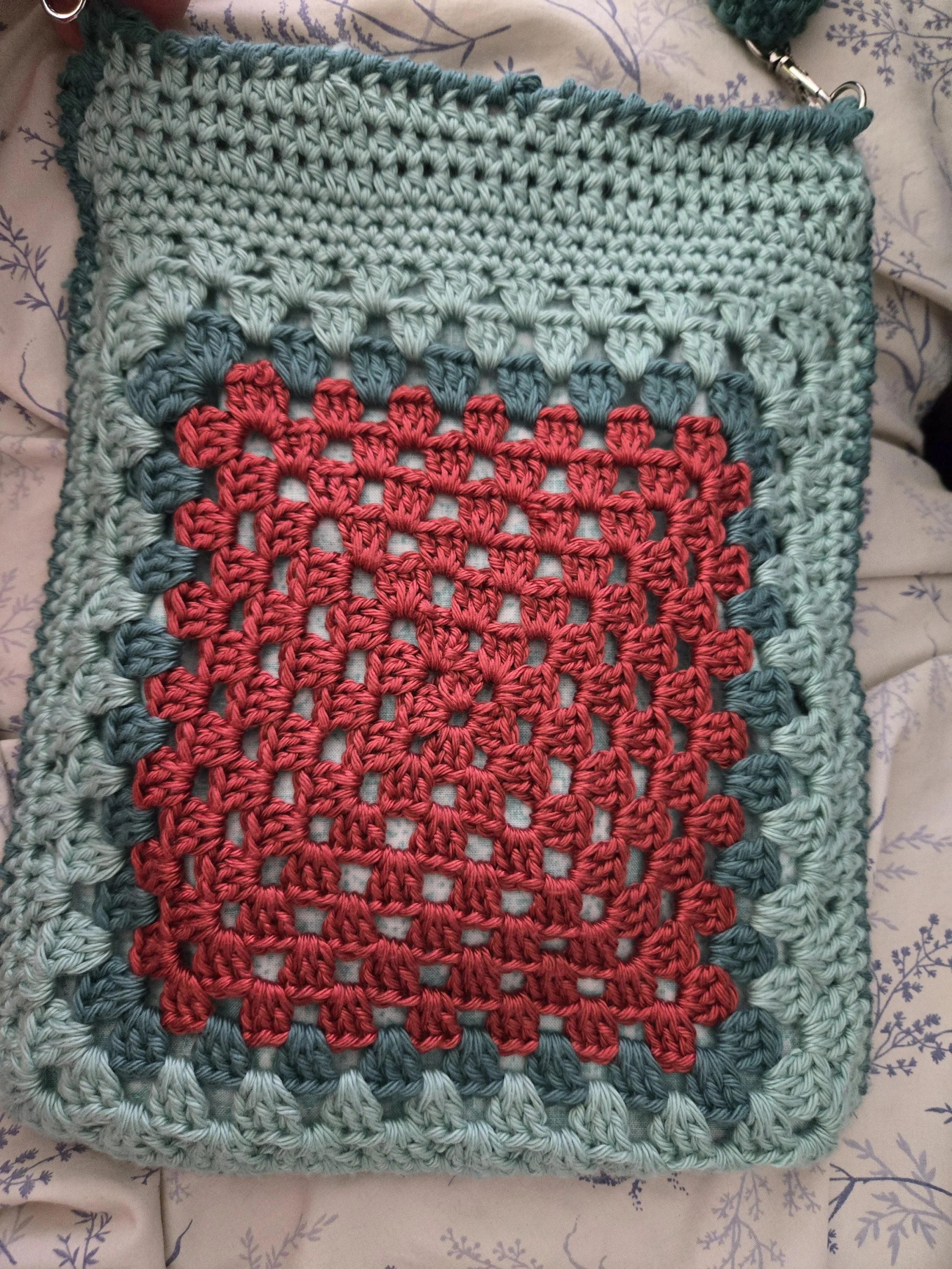 After looking through their website, I was able to find another small bag that I thought would be perfect for two of the balls of yarn I had bought back in the fall from JoAnn. I was so upset when they announced the closure of all the stores, but that’s another story all together that I’ll save for later. Here is the inspiration that I ended up using in the end with the larger square pattern from the other bag: Celtic Crochet Bag - Small Crossbody Bag by Celtic Knot Crochet